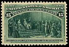 - ↑ Haimann, Alexander T., "15-cent Columbus Announcing His Discovery", Arago: people, postage & the post, National Postal Museum online, viewed March 16, 2014.