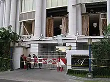 On July 17, 2009, two blasts ripped two Jakarta hotels, JW Marriott and Ritz-Carlton, killing seven.[35] It was the first serious attack for the country in five years. The police stated that it was committed by a more radical splinter group of JI, led by the man then dubbed as the most wanted terrorist in Southeast Asia, Noordin Mohammad Top. Top was killed in a raid two months later on September 17, 2009, in Solo, Central Java.[36] All members of his cell were either killed or captured, including the recruiter and field coordinator of the attack, Ibrohim, killed on August 12, 2009,[37] and the one said to be his successor, Syaifudin Zuhri, killed on October 9, 2009. After Top, many believed that terrorism in Indonesia had run out of charismatic leaders, and grew insignificant. According to South East Asian terrorism expert and director of the South East Asia International Crisis Group, Sidney Jones, Top's death was "a huge blow for the extremist organizations in Indonesia and the region".[38]