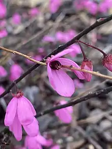 Tetratheca ciliata, commonly known as pink bells, is a small shrub in the family Elaeocarpaceae. It is endemic to southern Australia.[1]