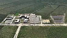 The campus is off of Interstate 410 ("Loop 410"), 12 miles (19 km) from Downtown San Antonio.[20] The university's main campus was constructed on a 580 acres (2 km2) site on the south side of San Antonio, near Loop 410 and Zarzamora. The developer of the land is Verano Land Group LP, who donated the 694-acre (2.81 km2) lot and one million dollars for scholarships.[21] Initially surrounded by rural land, plans for the main campus included it to be constructed alongside a 2,500-acre (1,011.7 ha) planned community with mixed-use commercial and residential development by Verano to create a vibrant living-and-learning, modern college town community.[22] Despite continued development on the university property, work on the surrounding areas owned by Verano Land Group stalled when the company got entangled in a litigation matter over land developer rights with a group of former company partners.[22] Following the settlement, Verano left the project and sold land surrounding the campus property to other developers with similar plans for the land to the original Verano project.[23] In November 2019, SouthStar Communities announced the acquisition of 600 acres of the original 1,800 owned by Verano Land Group along with plans for a planned community on property adjacent to University Way, the long entry boulevard to the campus from Loop 410.[24] The development will include 2,500 multi-family units, 2,400 single-family homes, and 750 condos, office space, retail space, industrial space, and recreational sport facilities, trails, and parks.[24] Like the initial plans, the VIDA planned community is intended to complement the growing Texas A&M University–San Antonio campus.[25]