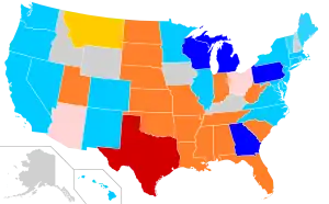 - 1 2 Liptak, Adam; Peters, Jeremy W. (December 11, 2020). "In Blistering Retort, 4 Battleground States Tell Texas to Butt Out of Election". The New York Times. ISSN 0362-4331. Archived from the original on December 11, 2020. Retrieved December 11, 2020.