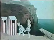 Reynaud covered the use of photographic pictures in the 1888 patent.[7] The July 1892 article in La Nature saw its future especially in the combination with photography.[9] In 1895 Reynaud worked on a Photo-Scenographe and from 1896 he included two Photo-Peinture Animée films in his Pantomimes Lumineuses programs,[14] but these only premiered after cinematographic films had been introduced.