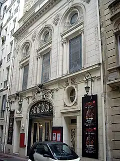 According to the present theatre's Web site, at some point in the nineteenth century, the Duke of Gramont built a rudimentary little theatre on this property, where he had also installed his mistress, opera singer Mademoiselle Coupé. Reputedly, the theatre privately offered a repertory that included risqué, even salacious work. In 1892, the space was renovated as a public concert hall with entrance in the adjoining courtyard area of Cité Monthiers. The hall, which featured orchestra level and three-sided balcony seating, as well as a large upstage organ, was named Salle Berlioz in honor of French composer, conductor, and music critic Hector Berlioz (1803-1869), who had lived nearby on the rue de Calais.[1]