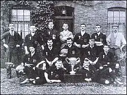 The Ironworks played their first fixture against Royal Ordnance reserves on 7 September 1895, the game ending 1–1.[8] One of the players likely to have been involved in this first game was Iron Works employee Charlie Dove,[9] who had played at full-back and centre forward during his time as a junior player.[5] Dove would be mainly used as a right-half, but would play every position for The Irons during his time with them.[10] Looking to bolster their attacking strength, the Irons had also recruited Ironworks employee George Gresham, an inside-forward who had played for Gainsborough Trinity, who would go on to score many goals for the club in the following four seasons.[11]