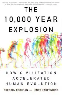 The 10,000 Year Explosion: How Civilization Accelerated Human Evolution is a 2009 book by anthropologists Gregory Cochran and Henry Harpending. Starting with their own take on the conventional wisdom that the evolutionary process stopped when modern humans appeared, the authors explain the genetic basis of their view that human evolution is accelerating, illustrating it with some examples.[1]