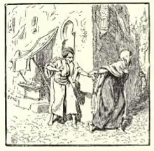In a faraway land lived a boy named Abdi. He was an orphan raised by the great jeweler Eli. One day, Eli was commissioned to create a necklace for the queen. Once the necklace was completed, Eli gave it to Abdi for traveling to the royal palace and giving it to the queen on her birthday. The boy starts his journey across the desert. One night while sleeping, Abdi is robbed by two Bedouins, who steal the necklace and replace it with a live snake. Unaware of the theft, Abdi reaches the palace and meets the king where the snake is revealed inside Abdi's bag. Seeing this, the king gets really upset and orders the boy to be thrown in the dungeon.