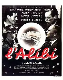 The Alibi (French: L'Alibi) is a 1937 French mystery film directed by Pierre Chenal and starring Erich von Stroheim, Albert Préjean and Jany Holt. It has been described as a precursor to film noir.[1]