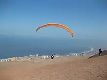 In this season's first Roadblock, one team member had to direct their taxi to follow their partner, who paraglided from the Alto Hospicio down to either Playa Brava or Huayquique Beach. Once team members reunited on the beach, they received their next clue.- After the first Roadblock, teams had to travel to Muelle Prat in order to find their next clue.