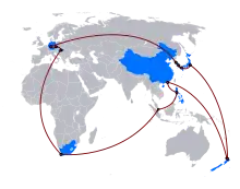 The second season of The Amazing Race Asia covered 50,000 kilometres (31,000 mi) (the longest route to date of The Amazing Race Asia) in 24 days racing across 4 continents, including the first time an Amazing Race franchise visited the Czech Republic, a nation that had not been visited by the original version at the time of air (the nation would later be visited in the 15th season, in 2009).[2][3] The show adopted newer rules from the original American version, such as the non-elimination penalty where the team who checked in last must make it to first place in the next leg or else incur the 30 minute penalty. It was also noted that the production of this season had run into the production of The Amazing Race 12 in an unknown airport.[4] Production made the show more competitive by imposing more self-driving and reducing the chance of teams being bunched up on the same airplane flight.[5]