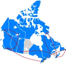 The Amazing Race Canada 1 is the first season of The Amazing Race Canada, a Canadian reality competition show based on the American series The Amazing Race. Hosted by Jon Montgomery, it featured nine teams of two, each with a pre-existing relationship, in a race across Canada. The grand prize included a CA$250,000 cash payout, two Chevrolet Corvette Stingrays, and unlimited air travel for a year with Air Canada. This season visited seven provinces and three territories and travelled over 23,000 kilometres (14,000 mi). Starting in Niagara Falls, Ontario, racers travelled through Ontario, British Columbia, Alberta, the Northwest Territories, the Yukon, Saskatchewan, Quebec, Nunavut, Nova Scotia, and Newfoundland and Labrador before finishing in Toronto. The series premiere aired on July 15, 2013, on CTV, with the season finale airing on September 16, 2013.
