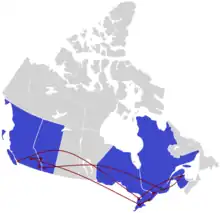 The Amazing Race Canada 8 is the eighth season of The Amazing Race Canada, a Canadian reality competition show based on the American series The Amazing Race. Hosted by Jon Montgomery, it featured ten teams of two, each with a pre-existing relationship, in a race across Canada. The grand prize included a CA$250,000 cash payout, a trip for two around the world, and two Chevrolet Silverado ZR2s.[1] This season visited five provinces and travelled over 20,000 kilometres (12,000 mi). Starting in Mont-Tremblant, Quebec, racers travelled through Quebec, Alberta, British Columbia, Ontario, and New Brunswick before finishing in Vancouver. New twists introduced in this season include the On Ramp, which was a task that gave teams the chance to reenter The Amazing Race Canada; the Pass, which forced a team to stop racing until another team passed them; a double elimination leg; and four teams racing in the final leg. The season was originally scheduled to premiere on CTV in July 2020; however, after the COVID-19 pandemic forced production to postpone the season for two years due to travel restrictions between selected Canadian provinces, it premiered on July 5, 2022 with a preseason special etalk Presents: The Amazing Race Canada airing on July 1.[2][3] The season finale aired on September 20, 2022.