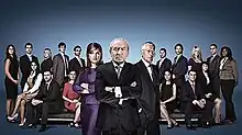 ![]() Promo group shot of Alan Sugar, Nick Hewer and Karren Brady standing before the candidates for series 7 | |