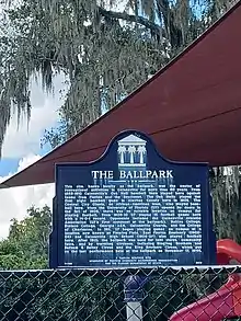 The National League's Philadelphia Phillies traveled to Florida for spring training before the 1892 season and used The Ballpark for practices and several exhibition games, beginning with a contest against a local amateur club on March 4.[3][4] The Phillies would again hold spring training in Gainesville before the 1921 season, but on that occasion, they used sports facilities at the University of Florida.