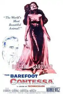 The Barefoot Contessa is a 1954 American drama film written and directed by Joseph L. Mankiewicz about the life and loves of fictional Spanish sex symbol Maria Vargas. It stars Humphrey Bogart, Ava Gardner, and Edmond O'Brien. The plot focuses on social positioning and high-powered politics within the world of film and high society.