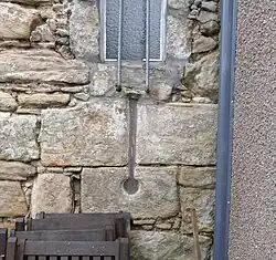 The ancient mansion or castle[3] of Kersland stood on Easter (now 'East') Kersland Farm. The remains of the 'L-Plan' tower has been built into the farmhouse. The barmkin wall survives and has a surviving strong defensive corner tower.[4] Paterson records that the house was almost entirely pulled down by the feuar, Robert Ker.[5] The remaining two barrel vaulted chambers, later used as a dairy and stable, with walls 8 ft thick, until recently formed part of the offices attached to East Kersland.