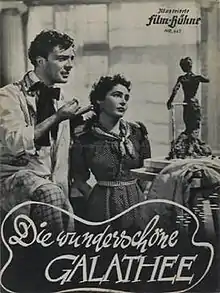 The Beautiful Galatea (German: Die wunderschöne Galathee) is a 1950 West German romantic comedy film directed by Rolf Meyer and starring Hannelore Schroth, Viktor de Kowa and Willy Fritsch.[1] It is inspired by the story of Pygmalion's statue Galatea and is based on the play of the same name by Franz von Suppé.