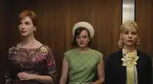 ![]() The final shot of the episode, illustrating the paths of three very different 1960s women: Joan Harris (Christina Hendricks), Peggy Olson (Elisabeth Moss), and Dr. Faye Miller (Cara Buono). | |