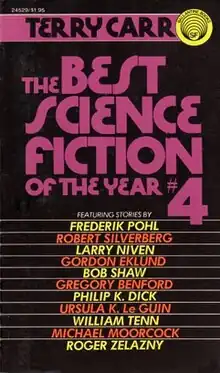 The Best Science Fiction of the Year #4 is an anthology of science fiction short stories edited by Terry Carr, the fourth volume in a series of sixteen. It was first published in paperback by Ballantine Books in July 1975, and reissued in October 1976. The first British edition was published in hardcover by Gollancz in September 1975.