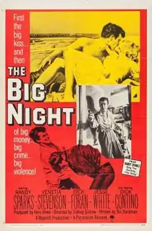 The Big Night is a 1960 American drama film directed by Sidney Salkow and written by Ric Hardman. The film stars Randy Sparks, Venetia Stevenson, Dick Foran, Jesse White, Dick Contino and Frank Ferguson. The film was released on February 17, 1960 by Paramount Pictures.[1][2]