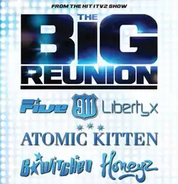The Big Reunion is a 2013 series of concerts featuring British pop groups Five, 911, Atomic Kitten, Honeyz, Liberty X and Blue, and Irish group B*Witched. The groups, who were big names in the UK pop music scene in the late 1990s and early 2000s, reunited for the ITV2 reality-documentary series The Big Reunion (apart from Blue, who had already been reunited since 2011), a show which follows them meeting again for the first time in a decade and rehearsing ahead of their comeback performance.