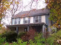 The Bird's Nest is a historic house at 526 Broadway at the One Mile Corner junction in Newport, Rhode Island, not far from the city line with Middletown. It is a 2+12-story wood-frame structure, three bays wide and two deep, with a gable roof and a large central chimney. A two-story ell extends from the rear of the house, and there are smaller additions which further enlarge the house by small amounts. An early 20th-century garage stands behind the house. The oldest portion of the house is estimated to have been built between 1725 and 1750, with most of the alterations coming in the 19th century, giving the house a vernacular mix of Federal, Greek Revival, and Gothic Revival elements. It was given its name by Dr. Rowland Hazard, who bought the property in the 1840s and used it as a summer retreat.[2]