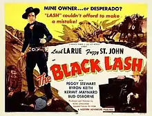 The Black Lash is a 1952 American western film produced and directed by Ron Ormond and starring Lash LaRue and Al "Fuzzy" St. John. It was the eleventh of LaRue's films for Ormond's Western Adventures Productions Inc.[1] The film was the fifth to be released by Howco, Ron Ormond's new film company composed of Ormond and drive-in movie owners Joy N. Houck and J. Francis White, and Ormond's second film as director. The screenplay is credited to Ormond's wife June Carr and his infant (born 1950) son Timothy. The film is composed mostly of footage from previous Ormond LaRue Westerns with the majority of scenes taken from Frontier Revenge (1948) with Ray Bennett repeating his role as the released Duce Rago, making the film a sequel to that film.[2]