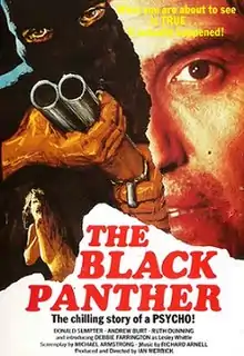 The Black Panther is a 1977 British crime film. Its subject is the real life ex-military criminal Donald Neilson, known as the "Black Panther". It was directed and produced by Ian Merrick, his first feature,[1] and stars Donald Sumpter, Debbie Farrington and Marjorie Yates.[2][3] The film was highly controversial on its release, regarded as deeply exploitative as it was released only a few years after the occurrence of the real life events. It was slated by media figures such as Sue Lawley of Tonight. Subsequently, the film was effectively banned from viewing.[4]