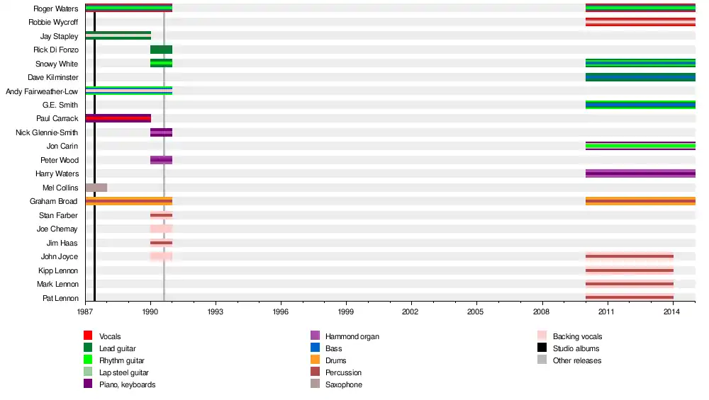 The band's membership would change variously as Waters went on to record the Radio K.A.O.S. album, and then mount the tour.