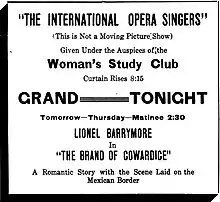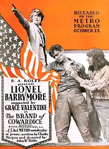 The Brand of Cowardice is a 1916 silent film starring Lionel Barrymore and released through Metro Pictures. It is a lost film.[1][2]