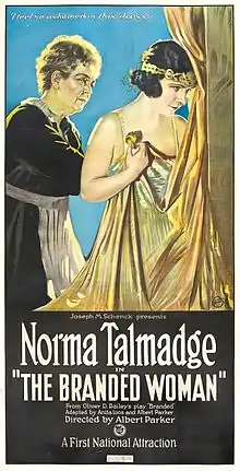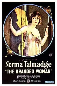 The Branded Woman is a 1920 American silent drama film released by First National Pictures. It stars Norma Talmadge who also produced the film along with her husband Joseph Schenck through their production company, Norma Talmadge Productions. The film is based on a 1917 Broadway play Branded, by Oliver D. Bailey and was adapted for the screen by Anita Loos and Albert Parker who also directed.[1][2]