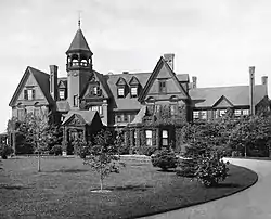 The estate and partnership between Lorillard and Peabody and Stearns may have led Lorillard's cousin, philanthropist Catharine Lorillard Wolfe, to purchase the property next door to his and to hire Peabody and Stearns to build her Vinland estate in 1882.[12] The property acquired for $200,000, also from the estate of Gov. Lawrence,[13] featured a Romanesque Revival style exterior consisting of red sandstone with Aesthetic Movement style elements.[14] After her death in 1896, the estate was also sold to a Vanderbilt descendant, Florence Adele Vanderbilt Twombly and her husband, Hamilton McKown Twombly.