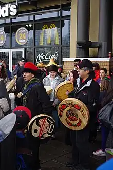 Upon the royal couple's arrival at St John's, Newfoundland and Labrador, prayers were held in Inuktitut, followed by Miꞌkmaq music. In his first speech of the tour, the Prince said that it was an "important moment" with "indigenous and non-indigenous peoples across Canada committing to reflect honestly and openly on the past, and to forge a new relationship for the future".[107] The Prince and the Duchess participated in moments of reflection and prayer, first with Lieutenant Governor Judy Foote and indigenous leaders at Heart Garden[108]—which had been unveiled on the grounds of the provincial Government House in 2019, in memory of former residential school students—and, two days later, at the Ceremonial Circle in the Dene community of Dettah, Northwest Territories,[109] where they also participated in an opening prayer, a drumming circle, and a feeding the fire ceremony.[110][111] Elisabeth Penashue, an elder of the Sheshatshiu Innu First Nation in Labrador, said it was "really important they hear our stories".[108]