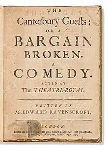 The Canterbury Guests; or, A Bargain Broken is a 1694 comedy play by the English writer Edward Ravenscroft. It was the only new work performed by the United Company that autumn, amidst tensions that eventually led to a split.[1]