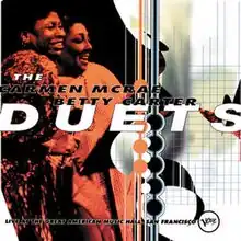 The Carmen McRae-Betty Carter Duets is a 1987 live album of duets by the American jazz singers Betty Carter and Carmen McRae. Originally released on American Music Hall Records, it was reissued in 1996 by Verve under the title Duets: Live at the Great American Music Hall with three previously unreleased tracks by McRae alone.