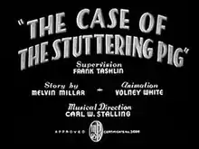 The Case of the Stuttering Pig is a 1937 Warner Bros. Looney Tunes animated cartoon directed by Frank Tashlin.[1] The short was released on October 30, 1937, and stars Porky Pig and Petunia Pig.[2]