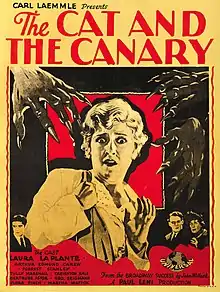 The Cat and the Canary is a 1927 American silent comedy horror film directed by the German Expressionist filmmaker Paul Leni. An adaptation of John Willard's 1922 black-comedy play of the same name, the film stars Laura La Plante as Annabelle West, Forrest Stanley as Charlie Wilder, and Creighton Hale as Paul Jones. The plot revolves around the death of Cyrus West, who is Annabelle, Charlie, and Paul's uncle, and the reading of his will twenty years later. Annabelle inherits her uncle's fortune, but when she and her family spend the night in his haunted mansion, they are stalked by a mysterious figure. Meanwhile, a lunatic mainly known as the Cat escapes from an asylum and hides in the mansion.