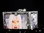 Other stage elements include a giant disco ball, a giant cube and a spinning carousel-like glass-window with large crucifixes depicting a chapel.[40][41][42][37] For the cube design, Madonna collaborated with game designer and artist Gabriel Massan inspired by her video "Bedtime Story" and Massan's dreamy landscapes. The cube is raised and projectors cover each side of the cube, with her movements recorded in real time.[43] Described as a "city of portraits",[36] the show have also several hanging retractable screens, and used the most amount of video in her touring career.[38][25] Speaking about the screens that came out constantly with projections on, according to Lipson, it allows singer's image and "key motifs" of her career to be "displayed to the entire crowd throughout the show".[35]