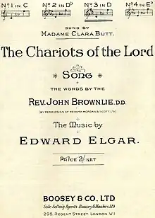 ‘”The Chariots of the Lord” is a poem by Rev. John Brownlie, D.D.,[1] set to music by Edward Elgar in 1914.