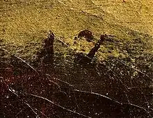 The Goya expert Nigel Glendinning rejects the idea that the picture was painted by Asensio Juliá, stating that the arguments supporting Mena's views are "totally subjective" and that the brush strokes that Mena claims are the signature "A. J." are actually the first digits of the inventory number 176 that is visible in old photographs of the painting. It is also possible to see other numbers in these old photographs such as the number 18 that is alluded to in the sentence "A giant with the number eighteen" used in a description of the painting A Giant which was the name used for the painting in the inventory of Goya's works carried out in 1812 after the death of the painter's wife Josefa Bayeu.[5][12][13][18] In 2012 Jesusa Vega published an article entitled "The Colossus is by Francisco de Goya" in which she shows how the strokes of various figure eights drawn by Goya correspond to those visible on The Colossus. Vega rejects the basic premise that initially threw doubt on Goya's authorship of the painting. In addition, she shows that the other findings of the study carried out by the Prado have all indicated that the picture was painted by Goya; these included the analysis of pigments and binders, assessment of the artistic techniques used and the theme and composition of the painting along with its similarity to Goya's other Black Paintings.[14] In 2009 the art historian Valeriano Bozal, after seeing Mena's press release, stated that "the report is not conclusive".[19] He later unsuccessfully tried to hold a congress of international experts with the objective of arriving at a consensus, declaring in June 2010 that "Goya's authorship has been removed on the basis of weak irrelevant evidence. The heritage of the painting has been mutilated without conclusive evidence".[20] Other scholars, restorers and former directors of the Prado have indicated that they disagree with Mena's hypothesis.[21]