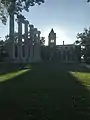 The Columns are the most recognizable landmark of the University of Missouri in Columbia, Missouri. Standing 43 feet (13 m) tall in the center of Francis Quadrangle and at the south end of the Avenue of the Columns, they are the remains of the portico of Academic Hall. Along with Jesse Hall, they are one of the most photographed sites in Missouri.[2] The Columns have been at the center of many traditions and events including graduations, concerts, pranks, weddings, and protests. Mizzou's school song mentions the columns,[3] and they have been the setting for a work of fiction. They are a contributing structure to the Francis Quadrangle National Historic District. The columns underwent preservation work in 2017.