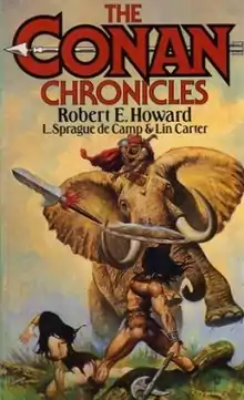 The Conan Chronicles is a 1989 omnibus collection of three fantasy collections by American writers Robert E. Howard, L. Sprague de Camp and Lin Carter, featuring Howard's seminal sword and sorcery hero Conan the Barbarian, published by Sphere Books. The component collections had originally been published by Lancer Books in 1967, 1968 and 1969, and later reissued by Ace Books.[1][2] The omnibus collection was followed by The Conan Chronicles 2.