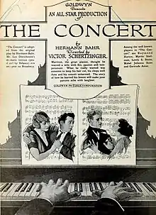 The Concert is a lost[1] 1921 silent comedy film directed by Victor Schertzinger and starring Lewis Stone, Myrtle Stedman, Raymond Hatton and Mabel Julienne Scott. It was produced and distributed by Goldwyn Pictures.[2] It was based upon the 1909 play of the same title by Hermann Bahr.
