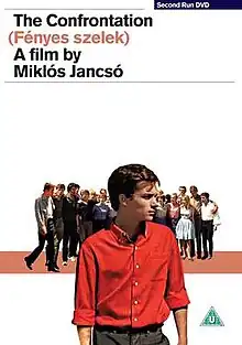 The Confrontation (Hungarian: Fényes szelek) is a 1969 Hungarian drama film directed by Miklós Jancsó. It was listed to compete at the 1968 Cannes Film Festival,[1] but the festival was cancelled due to the events of May 1968 in France.