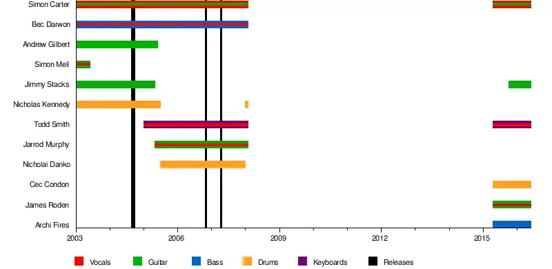 - Simon Carter – lead vocals, guitar (2003–2008; 2015–2016)