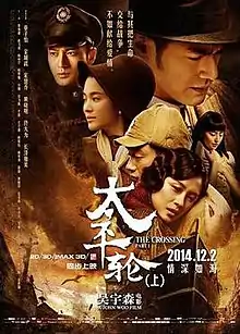 The Crossing (Chinese: 太平轮) is a 2014–2015 Chinese-Hong Kong epic historical romance-war drama (part 1) and disaster film (part 2) directed by John Woo and written by Hui-Ling Wang.[4] The film stars Zhang Ziyi, Takeshi Kaneshiro, Song Hye-kyo, Huang Xiaoming, Tong Dawei and Masami Nagasawa.[4] The film is based on the sinking of the Taiping in 1949.[2] The incident led to the deaths of over 1,500 passengers and crew. The film's first part was released in China on December 2, 2014. Part two was released on July 30, 2015.[5]