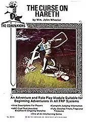 The Curse on Hareth was the first adventure in the five-part "Islandia Campaign" created by Peter L. Rice and Wm. John Wheeler through their company The Companions. Rather than a bound book, the adventure was published in 1982 as 74 loose-leaf three-hole sheets contained between two cardstock sheets, with two folded 11" x 16" sheets and one 17" x 22" color map, with illustrations by David J. Hutchins, Kevin McKeen, Diane Moran, Peter L. Rice, Beth Ann Warner, and Wm. John Wheeler, and cartography by Tom Cobb, Peter L. Rice, Patrick Rowland, and Wm. John Wheeler.[2]