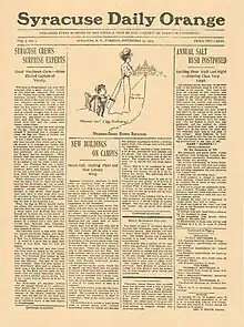 13. "At Syracuse University each student is taxed $2.50 for the support of the Daily Orange". University Daily Kansan. 10 October 1922. pp. 2 Open access icon. Retrieved 5 December 2020.