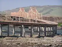![]() West side of The Dalles Bridge, as viewed from the north shore of the Columbia River, January 2008 | |