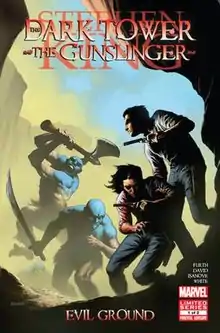 The Dark Tower: The Gunslinger - Evil Ground is a two-issue comic book limited series published by Marvel Comics.[1][2] It is the third non-sequential comic book limited series based on Stephen King's The Dark Tower series of novels. It is plotted by Robin Furth, scripted by Peter David, and illustrated by Richard Isanove and Dean White. Stephen King is the Creative and Executive Director of the project. The first issue was published on April 3, 2013.