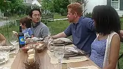 ![]() Near the end of the episode, a dream sequence is envisioned by Rick—Glenn is now a father and Abraham sits happily with Sasha; she is pregnant with their child. | |